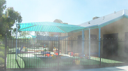 Outdoor cooling using misting and fogging systems bring relief from the heat in schools and day care facilities.