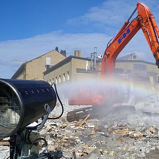 AJet® Mist Cannons prevent dust problems occuring during demolition activities. The atomised fog provides efficient dust suppression.